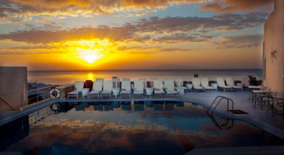 DESCRIERE: Având o locaţie excelentă cu vedere in panta la golful Kamari, pe coasta de est a insulei Santorini, acest hotel de lux oferă 2 piscine, inclusiv una încălzită, precum şi camere cu vedere frumoasă la golf. Toate camerele sunt echipate complet şi au TV LCD cu canale prin satelit, frigider şi aer condiţionat, ceas desteptator, seif electronic, telefon, uscator de par, articole de toaleta la baie. Unele camere sunt prevăzute cu DVD player şi cadă cu hidromasaj, jacuzzi (camerele deluxe). Hotel Epavlis oferă o zonă de spa cu o mică sală de fitness, o piscină încălzită şi facilităţi de hamam şi saună. Hotel Epavlis este la doar 300 de metri de plaja cu nisip negru si zona de promenada a statiunii cu numeroase taverne. Distante: aeroport – 4km, portul Athinios – 10km, capitala Fira – 6km pana la statia de autobuz – 200m. Masa: mic dejun inclus in tarif