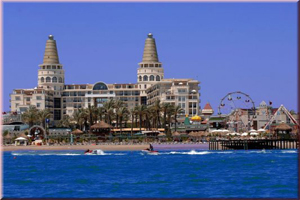 Localizare: chiar pe plaja, la o distanta de 15 km de centrul orasului Antalya si la 10 km de aeroportul din Antalya. Hotelul dispunde de o capacitate totala de 385 camere standard, 2 camere pentru persoane cu dizabilitati, 11 camere de tip family room, 58 camere de tip family duplex, 1 king suite, 1 presidential suite si 1 pink moon suite fara balcon (pentru luna de miere).