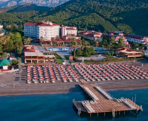 Localizare: Hotelul este situat la 65 km de aeroportul orasului Antalya si la 7 km de Kemer. Este intins pe o suprafata de 32000 mp. Renovat in 2011 camerele din cladirea principala, in 2014 cladirile anexe.